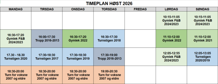 Terminliste Turn 2026